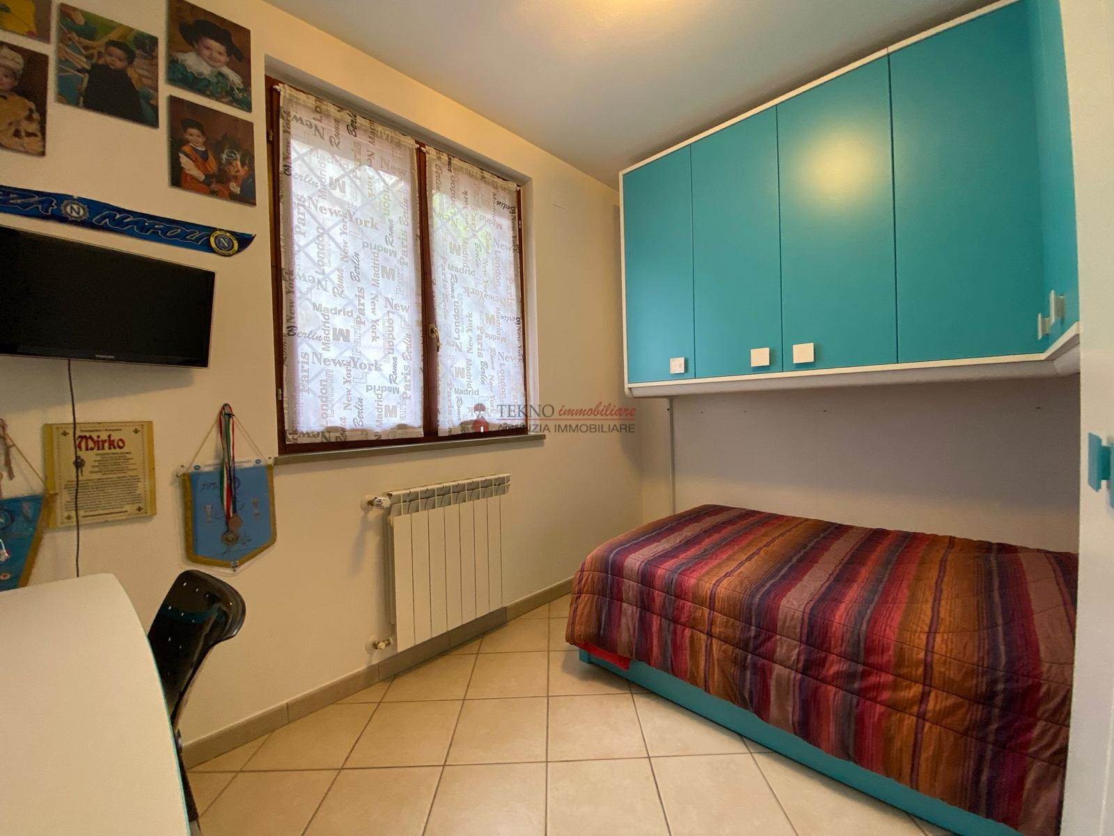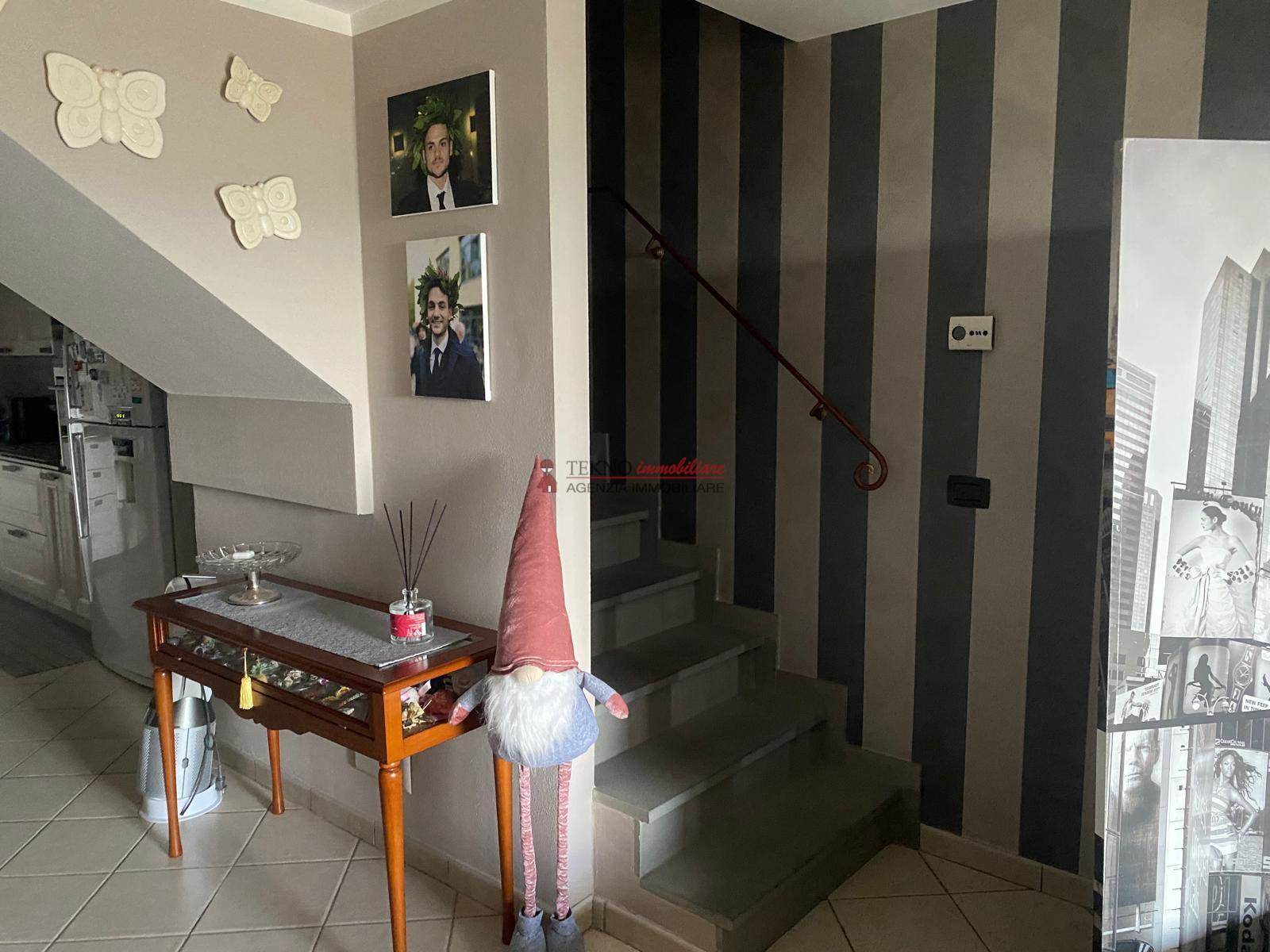 Al piano seminterrato, con accesso indipendente da resede esclusivo, taverna adibita a zona giorno con camino termoventilato, cucina servizio, dispensa e garage.Al pianoprimo sempre con accesso indipendente, da scala esterna esclusiva è composto da una cucina attualmente adibita a camera, soggiorno con affaccio su loggia, due camere da letto, un servizio e giardino/resede tergale. Al piano sottotetto due camere, un servizio e una terrazza a tasca.